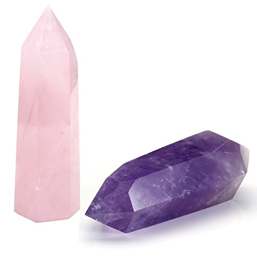 Size: Single terminated rose quartz: 2.9-3.5''(75-90mm) Double terminated amethyst:2.75-3.3''(70-85mm)