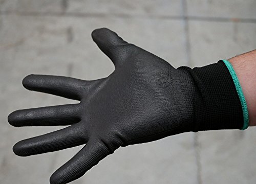 Global PUG Work Glove PUG17M Polyurethane/Nylon Glove, Work, Medium, Black, (12 PAIR)