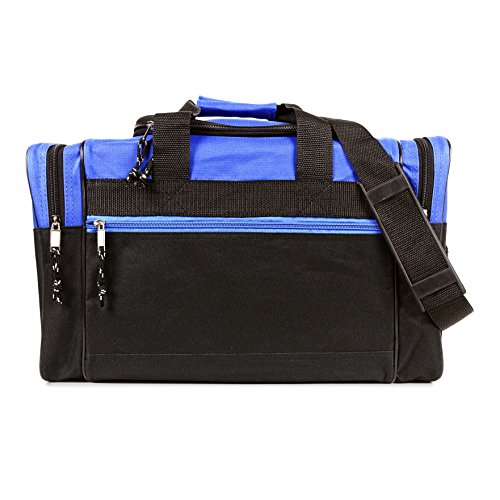 -. Feature : Material: 600D Polyester / Size: 17" x 10" x 9" / Features: Large zippered main compartment, two end zippered pockets, front zippered pocket, handles, and removable shoulder strap. / Intended Use: Gym, Sports, Travel, Carry-on, Camping, Hiking, Indoor/Outdoor Activities and etc... / If you're not satisfied Please contact us, 30-Days for 100% Money Back Guarantee