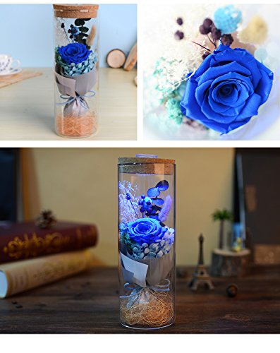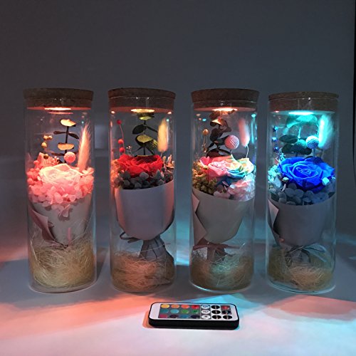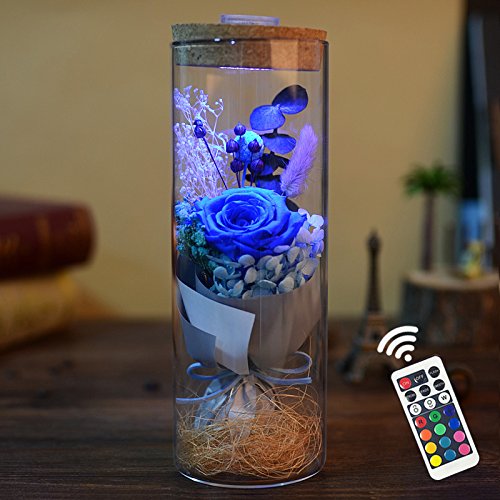 sexyrobot Glowing Preserved Blue Rose in a Glass, RGB Preserved Fresh Flower Glowing Colorful with Remote Control as Wedding Christmas Mother's Day Creative Gifts