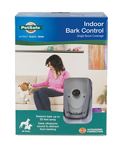 Studio : PET SAFE Publisher : PET SAFE Binding : Misc. Product Description PetSafe Indoor Bark Control System The PetSafe Indoor Bark Control System provides single room coverage for dogs that like to have their voices heard. It uses ultrasonic sound to automatically correct excessive barking. When the microphone picks up the sound of your dog's bark, the unit emits an ultrasonic tone that can be heard by your dog, but is silent to most humans. Startled by the high pitched tone, the dog should stop barking, as it will associate its bark with this unpleasant noise. There is no collar needed, and it will detect a bark up to 25 feet away. It is freestanding, or can be adhered to door frames, window frames, or just about anywhere needed. Features: Single room coverage Uses ultrasonic sound to automatically correct excessive barking No collar needed Detects bark up to 25 feet away Freestanding, or can be mounted as needed Low batter indicator Item Specifications: System Includes: Indoor Bark Control Unit Adhesive backed Hook and Loop Fasteners Two CR2032 Batteries Operating Guide 0