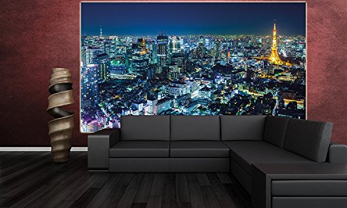 Skyline By Night Photo Wallpaper – Tokyo By Night Mural – Xxl Skyline Wall Decoration