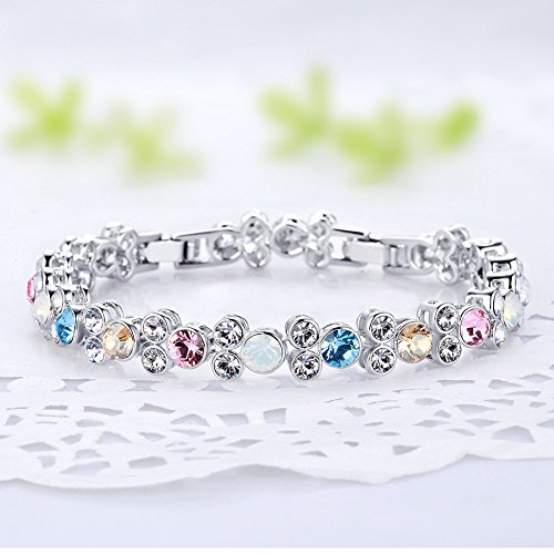 -. Feature : The crystal bracelet is made with Swarovski Elements Crystal. It features high quality white gold plated for tarnish resistant and a long lasting mirror finish. / High quality, tarnish resistant and hypoallergenic. Lead, nickel and cadmium free. / Bracelet Length: Adjustable, 6.4" excluding the extension chain of 1.1". Adjust it to fit your size perfectly . / Best Mothers Day,Anniversary,Wedding,Birthday,Christmas,Valentines Day Gift for Sister,Mother,Mom,Grandmother,Daughter,Wife,Girlfriend,Friend,Aunt,Mum,Grandma,Female Friend,etc. / All items come in a gift box, ready for gift giving.