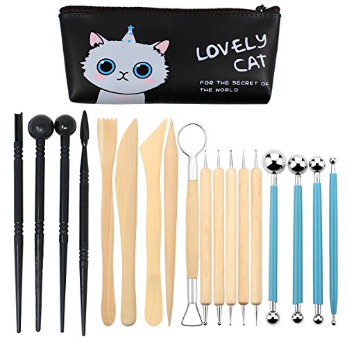 - High Quality: The Balls Are Made Of Stainless Steel And Plastic, With Lovely Cat Pencil Pouch X 1, Blue Rubber Handles X 4, Wood Handles X 5 Or Plastic Handles X 4, Clay Tools X 5 Are Made Of Wood, Easy To Grip, Convenient To Use.Can Meet Your Various Craft Projects Needs For Different Creative Effect.