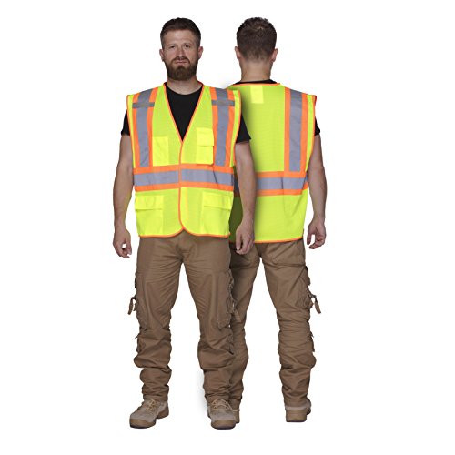 - HIGH VISIBILITY AND 360° REFLECTIVITY: Fluorescent Yellow Safety Vest with 2" width Two-Tone Tape along the chest,shoulders and back. This vest provides 360° protection to enhance the visibility and safety of People.