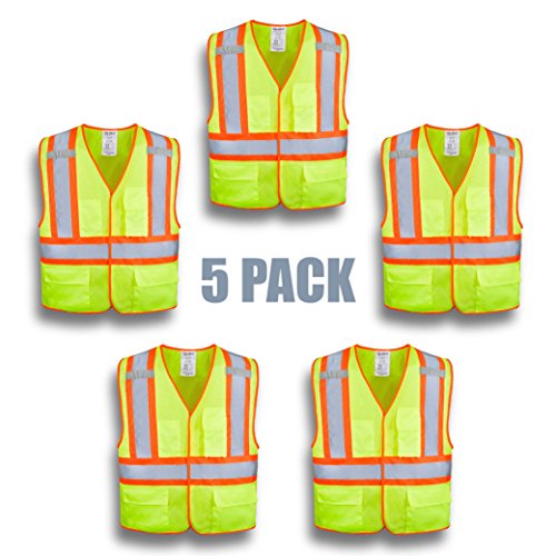 XSHIELD XS0100,High Visibility Safety Vest with Silver Stripe,ANSI/ISEA 107-2015 Type R Class2 Not FR,Pack of 5 (M, Yellow)