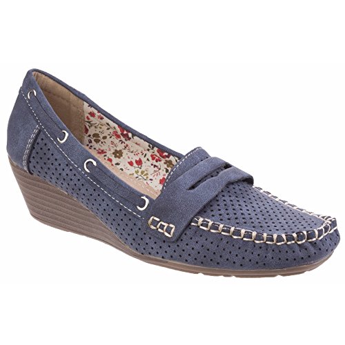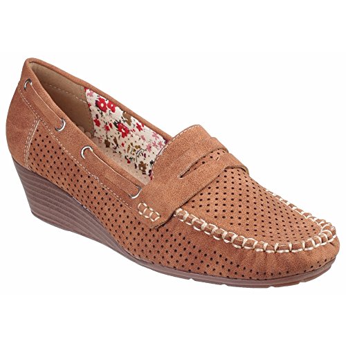 Binding : Apparel Product Description Womens moccasin. Lightweight. Breathable. Perforated upper. Moccasin style front with boat shoe side trims. Front bar strap with cut out feature. Floral print. One and a half inch medium wedge heel. Upper: PU. Lining: Textile. Sole: TPR. 0