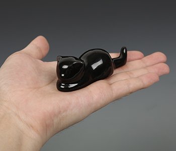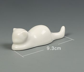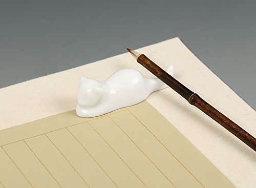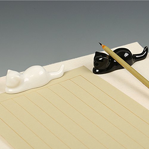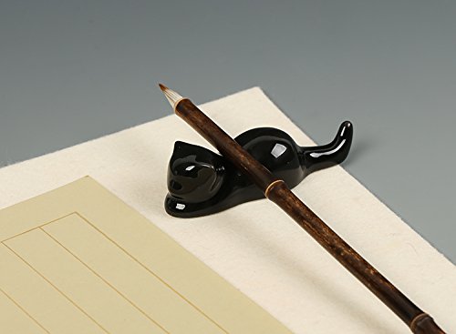 BG011 Hmay Chinese Calligraphy and Sumie Ceramic Brush Rest / Holder with Cat Design (1 Pair with black one plus white one)