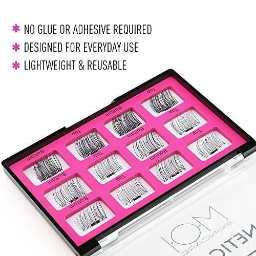 M.O.I magnetic technology gently “sandwiches” your natural lashes to create bold, full lashes in seconds! The magnets attach together for secure, comfortalbe, and gorgeour lashes!