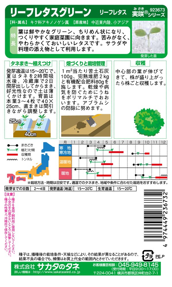 Sakata Thane Misaki Vegetable 3673 Leaf Lettuce Green Leaf Lettuce