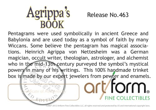 Objet d'art Release No.463 "Agrippa's Book" Ancient Pentagram Handmade Jeweled Trinket Box