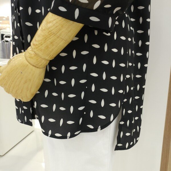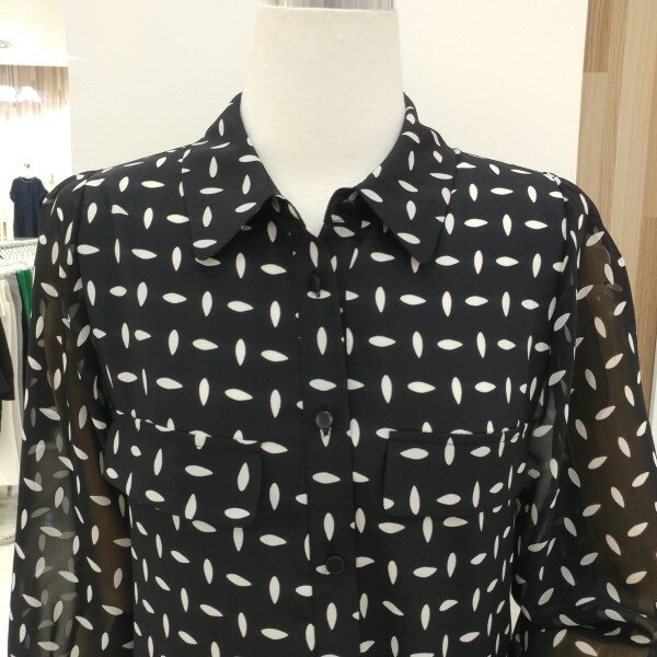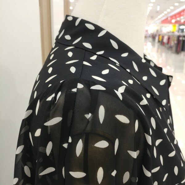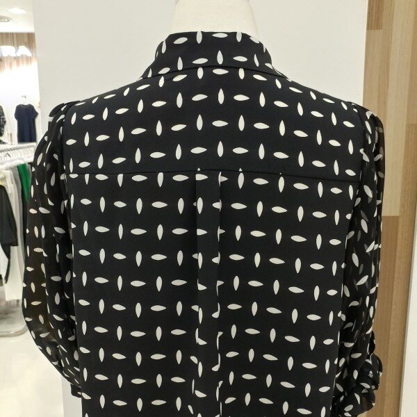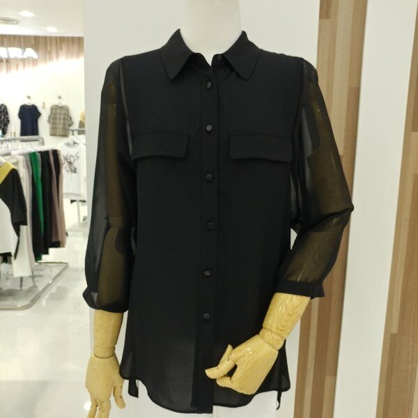 어깨선을 일반 블라우스보다 올려놓아 더 늘씬해보이고 소매 시수류인 본제품은
