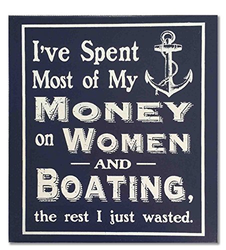 Nautical Boating Wood Sign “I’ve Spent Most of My Money on Women and Boating” Nautical Style Hand Screened Wood Sign, Navy