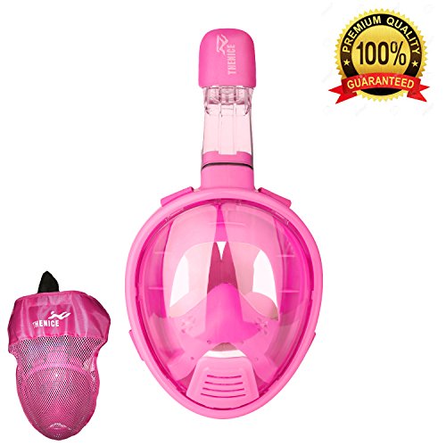THENICE Scuba Diving Mask Set for kid Full Face Easybreath Snorkeling Gear with 180 Sea View Including Universal Waterproof Case and Anti Fog Spray (PINK)