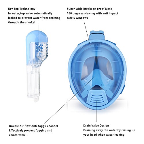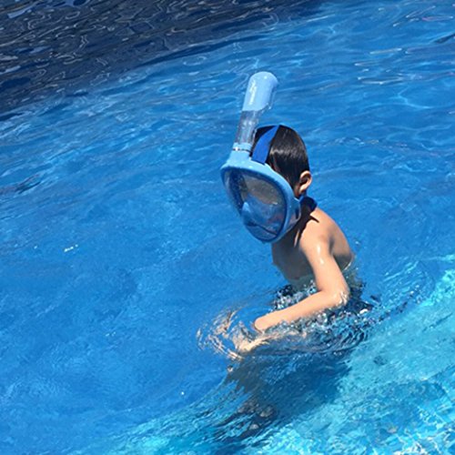 THENICE Kids Scuba Diving Mask Set Full Face Easybreath Snorkeling Gear with 180 Sea View Including Universal Waterproof Case and Anti Fog Spray (BLUE)