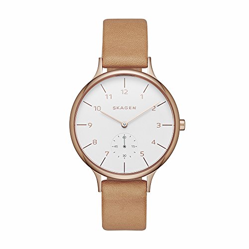 Skagen Women's Anita Quartz Stainless Steel and Leather Casual Watch, Color Rose Gold-Tone, Brown (Model: SKW2405)