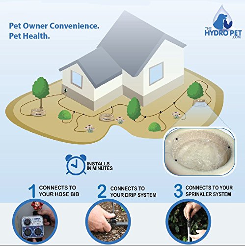 Studio : Vacarro Intellectual Properties Publisher : Vacarro Intellectual Properties Binding : Misc. Product Description The Hydro Pet is an automatic watering bowl. The water is delivered through your drip irrigation, sprinkler head or hose bib with a timer. Every time your irrigation system turns on The Hydro Pet’s patented water feature agitates the old water recycling it out through the patented waterfall to specific plants trees or shrubs while filling the bowl with fresh clean water. This water bowl is also like a "sprinkler" and makes the perfect addition to your landscape. What makes "The Hydro Pet" different are the health benefits for both pets and their owners due to the circulation of the water removing possible zika and heartworm infected mosquito larva, disease causing bacteria and algae. 0