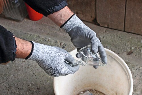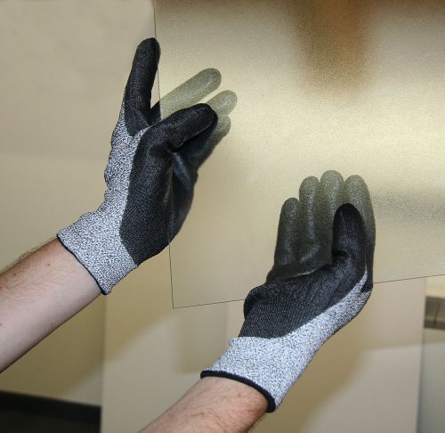 -. Feature : • Feinstrickhandschuh (13 Gauge) aus schnittfestem Glasfasergewebe und Spandex / • schwarze HD-Polyurethan-Innenhandbeschichtung / • gute Durchstichfestigkeit (beschichteter Teil) / • sehr gute Passform / • Anwendungsbereiche: Arbeiten mit scharfen Kanten und Glas
