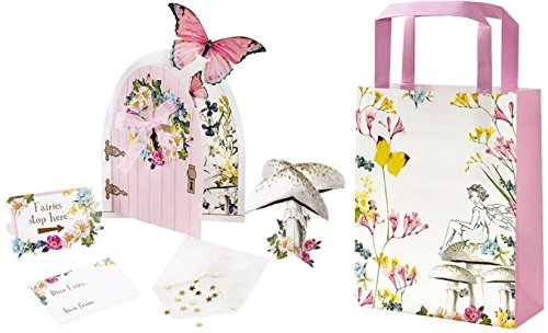 - Featuring a card fairy door for popping on the floor, as an entrance to a magical fairytale world, a metal key, butterfly, toadstool and tiny bunting.