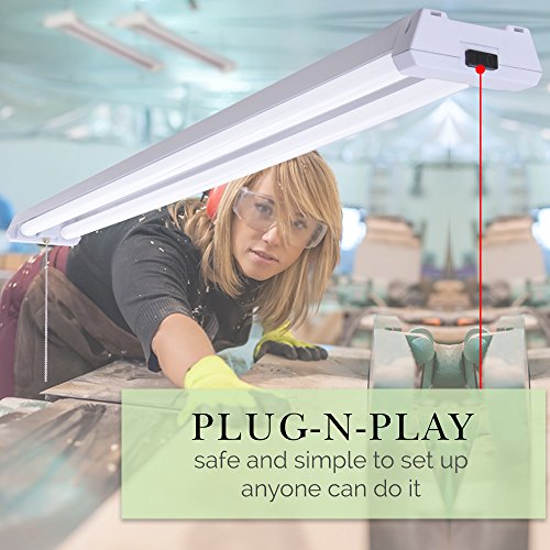 - ✔ BENEFITS: Sunco's LED Shop Light is designed using incomparable material and has a lifetime of 50,000 hours. With our INSTANT ON feature, you never have to worry about flickering. The light is MERCURY FREE and contains NO UV, making it safe for the home and environment. All purchases come with an instructional manual for easy, simple and fast installation. Surface & Suspend Mount. Plug-n-Play, 5’ plug-in cord, no wiring needed. 18.5” pull cord switch. NO humming sound.