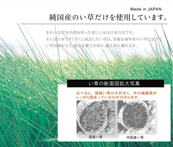 【素材】表地=い草(九州産) 裏地=ウレタンフォーム6mm ※紋織3重織 ヘリ=綿100%