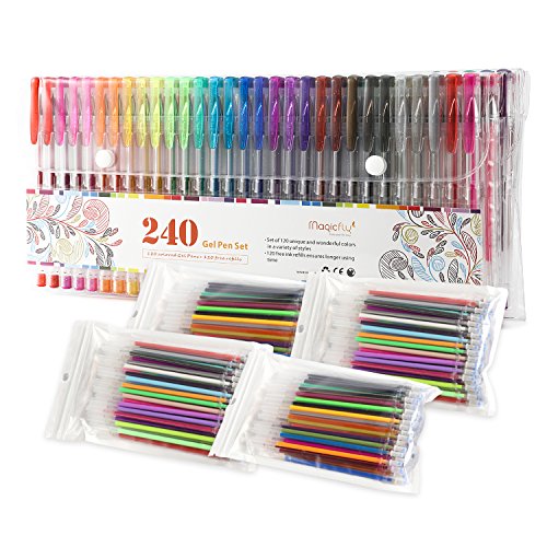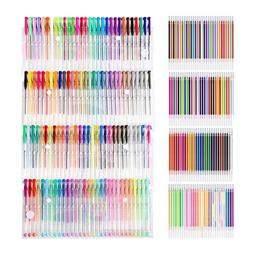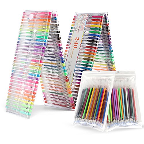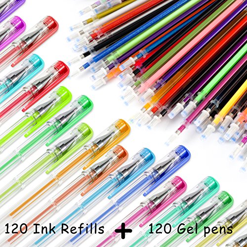 240 PICS, 120 ASSORTED COLORS: : Since you love using gel pens bring your coloring pages to life, we decided to creat a set that exclusively contains all of 120 colors with NO DUPLICATE (Including 28 Glitters, Special Brown,Brown Earth Tones).This will give you a varity of 120 coloring gel pens,the total 240 pens are enough to make your artwork pop right off the page