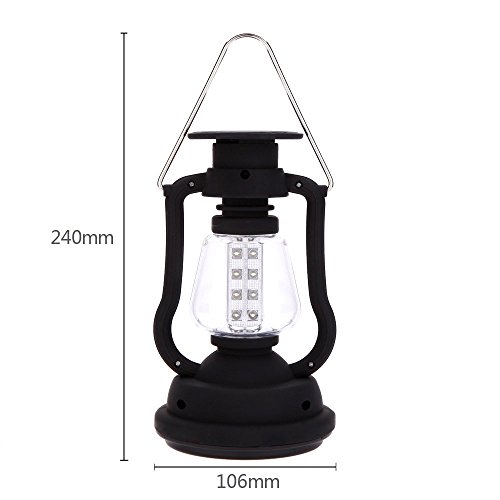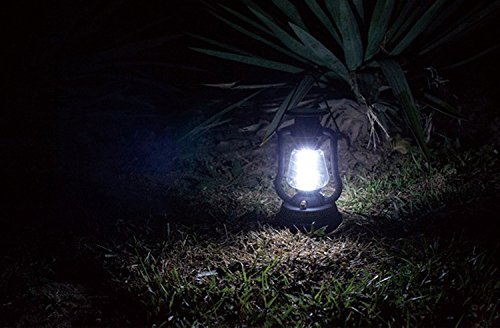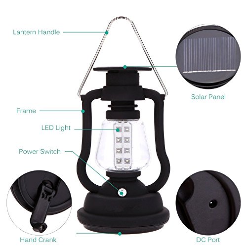 This camping lantern uses ultra bright LEDs which produces a very bright beam. Charged by solar and hand crank, no battery and bulb either.
