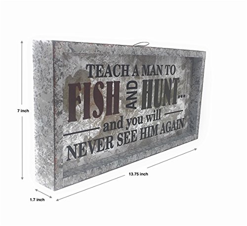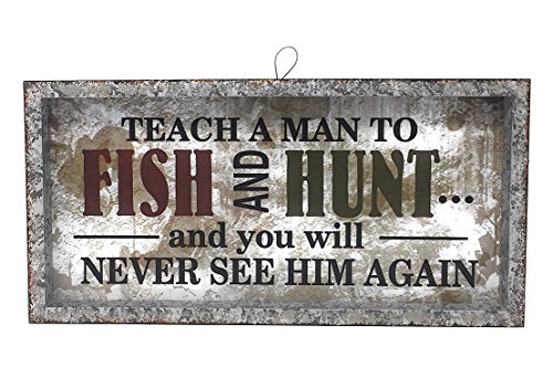 - HOME DECOR HUNTING FISHING: Man cave wall sign with the famous quotation "Teach a Man to Fish and Hunt and you will NEVER SEE HIM AGAIN."