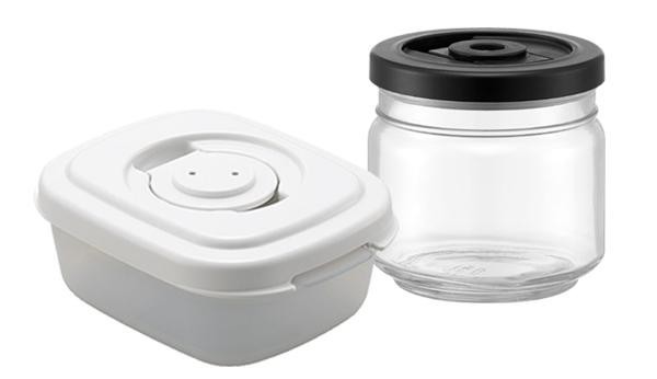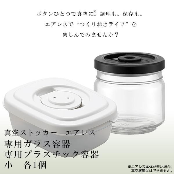 真空ストッカー『エアレス』専用のガラス容器とプラスチック容器のセットです。小さいサイズなのでちょっとの作り置きに。 |