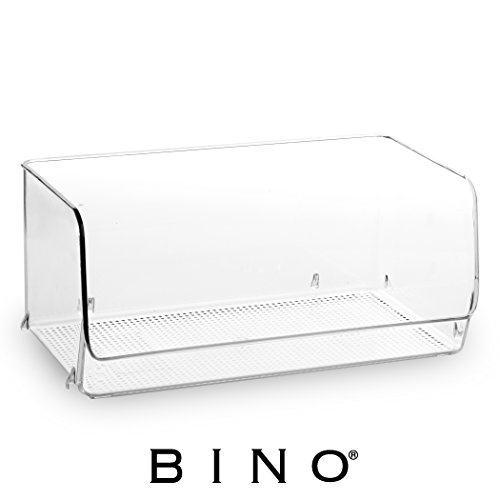 BINO Stackable Refrigerator, Freezer and Pantry Cabinet Storage Organizer Bin, Clear and Transparent Scoop Front Container for Home and Kitchen , Large