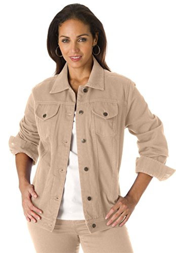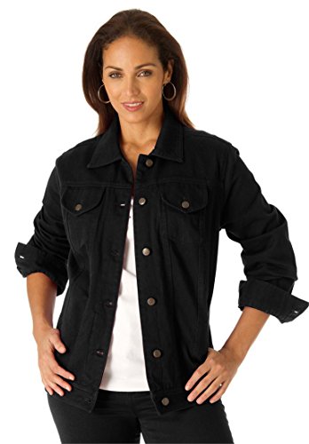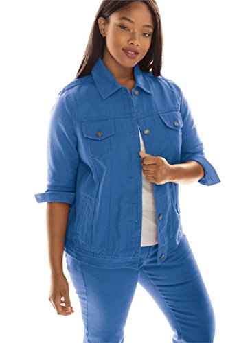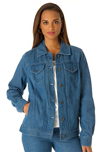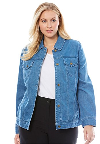 Studio : Jessica London Publisher : Jessica London Binding : Apparel Product Description Plus Size Coats Jackets by Jessica London. Our famous L-pocket jean jacket is a wardrobe staple for any season. Classic Jean Jacket And L-Pocket Bottoms can be worn over a plus size sundress in the warm seasons, or with plus size pants for a more casual look. This plus size jean jacket is a versatile and terrific piece for your wardrobe. Soft cotton color-washed denim and twill. Bottoms have button-and-zip fly fronts; two back patch pockets. Pair with a classic plus size blouse or plus size tee to complete a gorgeous ensemble. Machine wash. Imported. Jean jacket. Banded bottom and button cuffs. Chest and side pockets. 26" long. "I ordered this white jean jacket to replace one that got hair dye on it that I couldn't get out, so the jacket looked dingy. This new one, I just love it. It is a little bit longer in length, which I really appreciate since I am tall. There is plenty of room in the arms, it's not too tight like some are. I can easily wear a sweater with it. The denim is thick, plenty warm enough even for late fall. I wear my jean jackets every day and this jacket is such good quality that I know that it will last, but will also get better with age! It washes well, and while I usually hang my jackets up to dry, I think I'll be drying this in the dryer. I think it will get softer with each wash. The one thing that would make it even better is a sale!" -N., Bangor, MEPlus size jean jacket with L-pockets - plus size jackets for women, plus size tops, plus size outerwear in sizes 14 to 28 0
