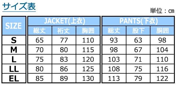 | セット内容 | ジャケット、パンツ、収納袋 |
