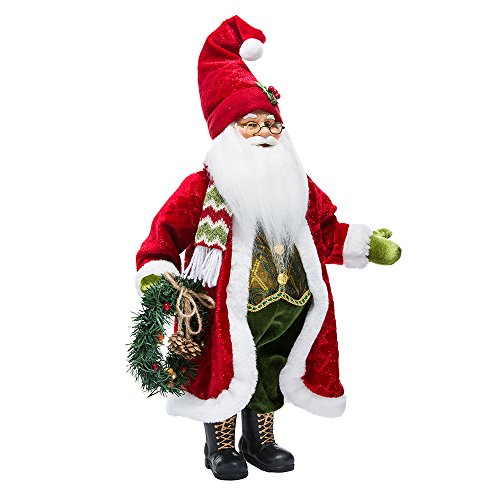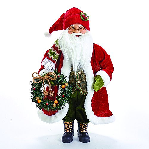 Kurt Adler 18" Fabric Mache Red Jacket Santa with Wreath