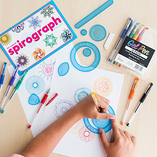 Set Includes: 1 Spirograph and 1 set of 12 Gel Pens (4 standard colors and 8 glitter colors).