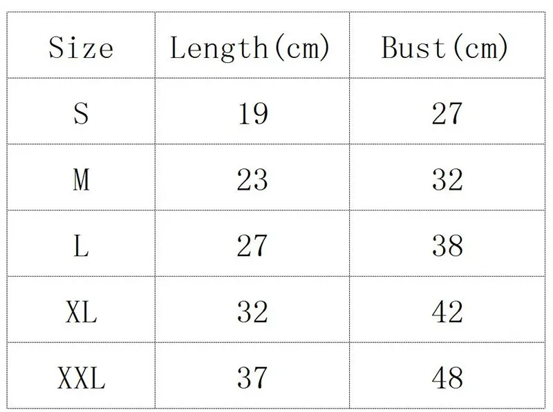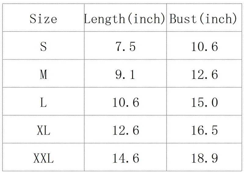 Size:S M L XL XXL