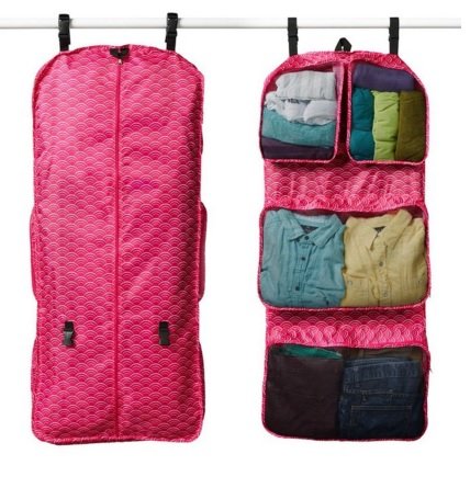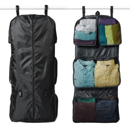 Product DescriptionTwo-sided hanging travel bag will revolutionize how you pack! Hang dresses and garments in zippered garment bag side.0