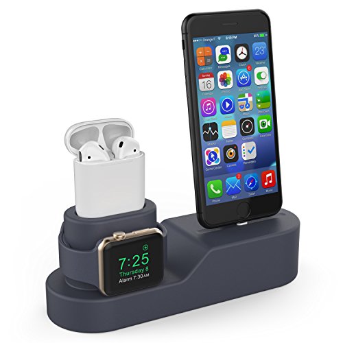 -. Title : AhaStyle 3 in 1 Premium Silicone Charging Stand for AirPods & Apple Watch & iPhone-Navy Blue