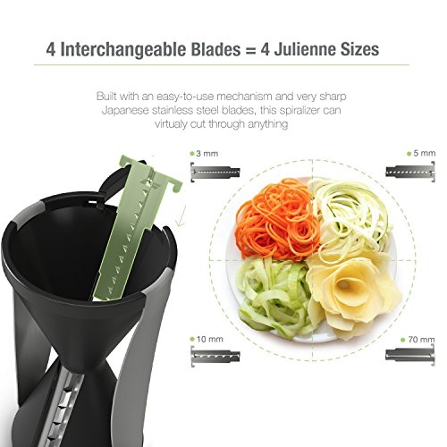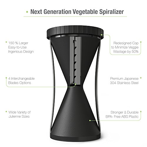 - Title : Spiral Slicer Vegetable Spiralizer by enviHome - Complete 4 Blades + Peeler Bundle Set 2015 - Zucchini Spaghetti Noodle / Pasta Maker - 150% Larger, 50% Less Waste - Healthy Salad Tool (Premium Black)