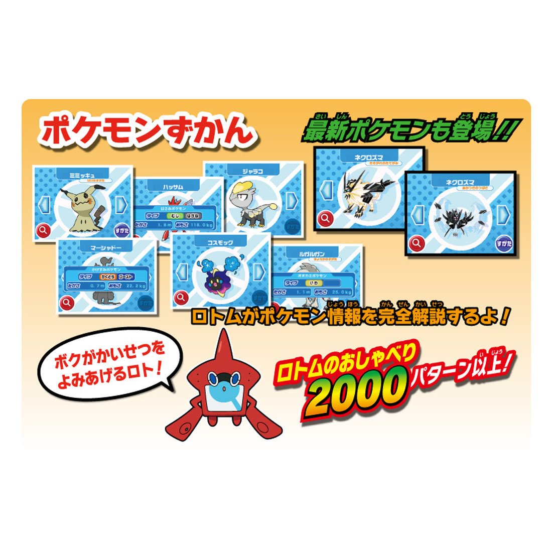 When you discover Pokemon you register Pokemon information in an illustration! Rotom talks about Pokemon and talks.