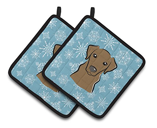 Caroline's Treasures Snowflake Chocolate Labrador Pair of Pot Holders BB1668PTHD, 7.5HX7.5W, Multicolor