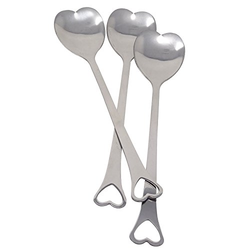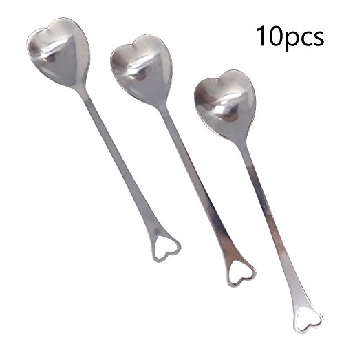 Honbay 10PCS 14.3cm/5.6Inch Stainless Steel Creative Lovely Sweet Heart Shape Fine Polishing Coffee Scoops Coffee Sugar Spoons Milk Dessert Spoons Teaspoons Kitchen Stirring Spoon