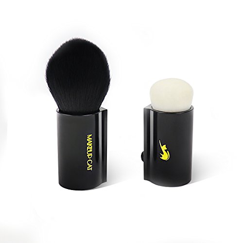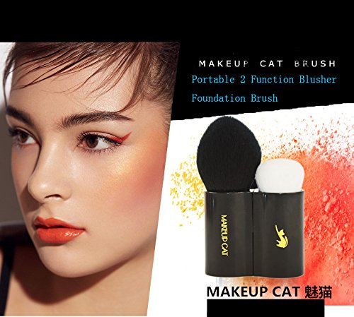 MAKEUP CAT Kabuki Foundation Brush Face Brush Blush Power Brush Double Head Vegan Makeup Brush Portable Multi-fountion Cosmetic Brush Black 1 Piece