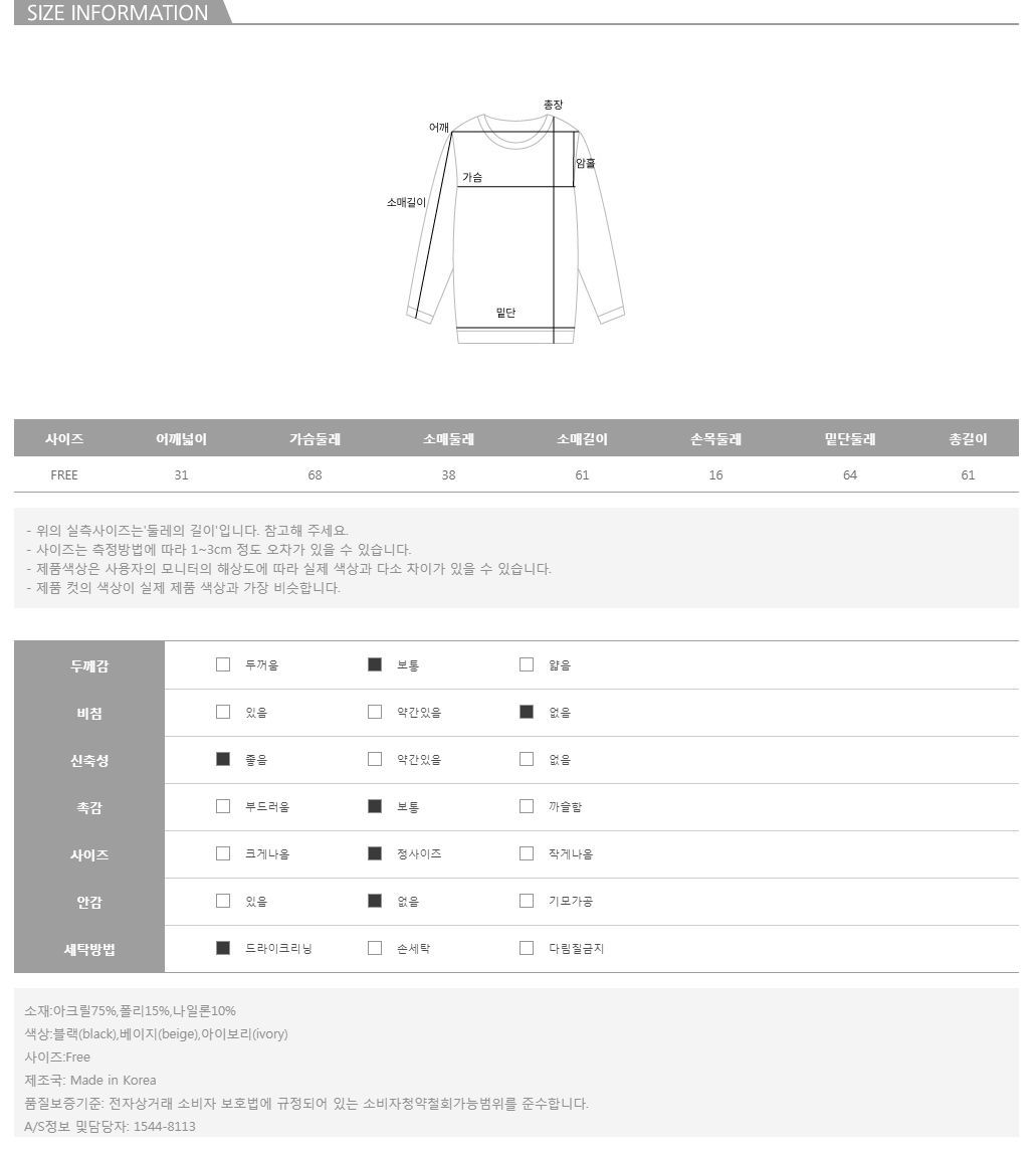 컬러는 블랙베이지아이보리 3color로 구성되어 있으며