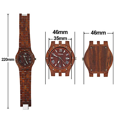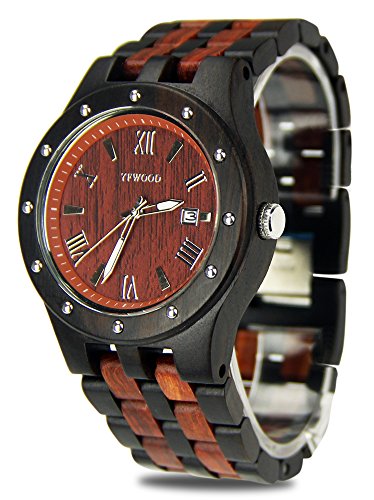 YF-WOOD 손목시계목의 시계 유니섹스 구미에 압도적인 인기 를 가지고 있는 고급감 충분히 천연 목제 손목시계 우드 시계 wood watch 맨즈 시계 (빨강단과 흑단)