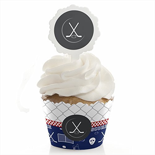 Shoots & Scores! - Hockey - Cupcake Wrapper & Pick Baby Shower or Birthday Party Kit - Set of 24