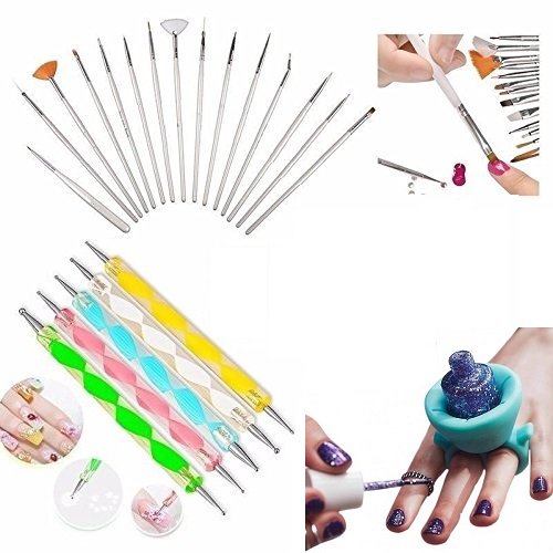 Glam Hobby 20pc Nail Art Manicure Pedicure Beauty Painting Polish Brush and Dotting Pen Tool Set for Natural, False, Acrylic and Gel Nails