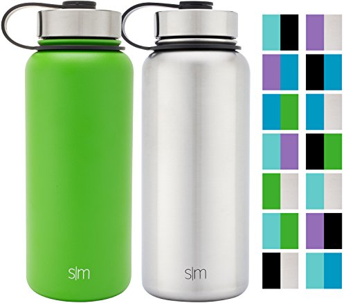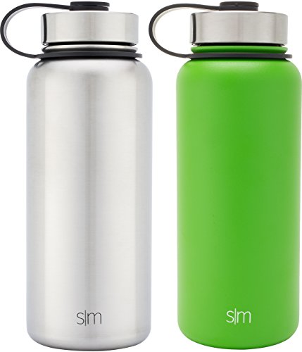 Simple Modern 32oz Summit Water Bottle 2 Pack - Two Vacuum Insulated Stainless Steel Wide Mouth Hydro Travel Mugs - Powder Coated Double-Walled Flask - Candy Apple Green/Stainless Steel