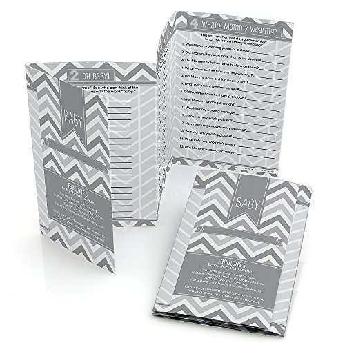 -. Feature : Chevron Gray - Baby Shower Game Includes: 12 player sheets and 1 answer key / Fabulous 5 Baby Shower Game Includes 5 Games: Famous Families - Match the famous celebrity with their child. / Oh Baby! - See how many songs, phrases, or movies you can think of that use the word baby. / Who's Your Mommy? - Guess the name of each of the animal baby's mommy. What's Mommy Wearing? - Be the best at remembering what the new mommy is wearing. / Baby Busters - Decide if the 20 pregnancy statements listed are fact or myth. Made in the USA.