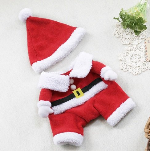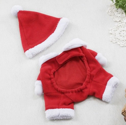 ・サンタ服とサンタの帽子のセットです。帽子には耳を通す穴あり。ぜひ、お試しください。