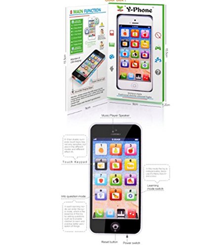 Y-Phone English Learning Machine YPhone Educational Learn Baby Kids Toys Sample Name: English phone box simulation learning toys Packing: Display Box Packing: 15.50 × 9.00 × 1.20 CM Package: 1x yphone 1x retail box This is a simple toy,not really phone,no game in it ,when touch the screen it will say something according to the picture,thanks. this product need to open the switch,when you open the switch,it will ring and when you press the picture on the phone,it will said something, ,if it out of power,you can use the USB to charger it ,need to open the switch,Inserted into the USB, When it swich on there was a sound beep . any function not work. You have to wait for it to charge about 10 minutes , remove the power can be used normally .Feature